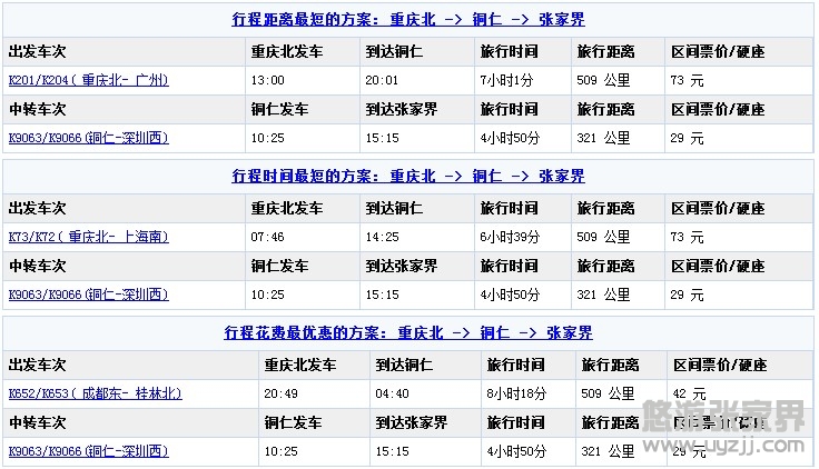 重慶到張家界沒有直達的火車,如果是坐火車到張家界,一般需要到銅仁中轉(zhuǎn),坐車及中轉(zhuǎn)車次如下: