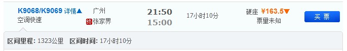 從廣州出發(fā)到張家界自由行自助游,一般都是坐火車到張家界,乘車車次有:K9072、K9068、K9064三趟,分別時刻表為: