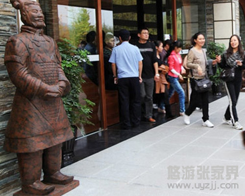 張家界“雷人”事很多!10月12日,一條題為《黃龍洞音樂廳太牛B,請山寨“兵馬俑”當(dāng)門衛(wèi)》的帖子在紅網(wǎng)論壇備受關(guān)注。帖子內(nèi)容稱,張家界黃龍洞景區(qū)10月10日起,用兩尊仿制的“兵馬俑”在哈利路亞音樂廳當(dāng)門衛(wèi)。