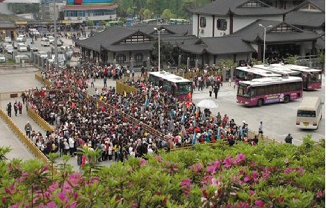 在境內(nèi)外客源市場(chǎng)全面拓展的大好形勢(shì)下,張家界武陵源區(qū)2011年旅游接待再邁新臺(tái)階。11月4日,從張家界武陵源區(qū)旅游局傳出喜訊:1至10月,武陵源全區(qū)旅游接待達(dá)到1529.8萬人次,同比增長30.36%;實(shí)現(xiàn)旅游總收入突破60億元,同比增長32.58%,創(chuàng)下建區(qū)以來年內(nèi)旅游總收入新高。圖為吳家峪門票站等候進(jìn)山觀光的游客。